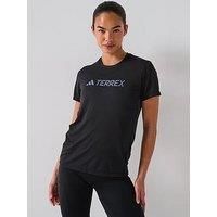 The Women's Multi Climacool Logo Tech Tee from adidas Terrex features underarm gussets and backward-shifted shoulder seams for full unrestricted movement._CLIMACOOLQuick-drying and sweat-wickingUnderarm gussetsCrew neckBackward-shifted shoulder seamsRegular fitAdidas Terrex logoFabric: 100% recycled polyesterColour: Black - Manufacturers part number: JI9231