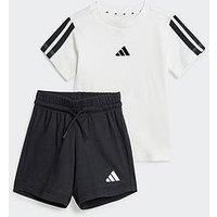 adidas Sportswear Infant Unisex Essentials Tee Set - White Introducing the Essentials T-shirt set, a unisex ensemble designed for an easy, everyday look. The top and bottom both offer a regular fit and are made entirely of cotton, ensuring comfort throughout the day. With updated fits and branding, including 3 stripes and an embroidered sign off, this set is a modern take on versatile styles. Material Content: 100% Cotton Washing Instructions: Machine Washable