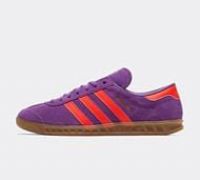 adidas Originals Hamburg Trainers in Active Purple, Solar Red and Gold Metallic. Originally released back in 1982, this reborn legend is ready to retake its crown as the streetwear king. Made from lush premium leather with a double stitched T-toe and contrast heel tab. Secure lace fastening, synthetic lining, grippy honeycomb traction rubber outsole and signature adidas brandings throughout. Purple Size - 7.5