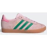 adidas Originals Junior Gazelle Trainers in Clear Pink, Court Green and Bliss Pink This stallion of a shoe has had an innings of over 70 years and is showing no signs of being bowled out by the competition. Cut into a low profile that showcases a buttery soft suede upper, soft textile lining and durable rubber sole. Regular fitting with a secure lace fastening, classic serrated 3-Stripes to sides, foil Gazelle wording and Trefoil logos to heel tab, tongue and insole. Pink Size - 4 - Manufacturers part numbers: WBVDT|Adidas_8700083350-370|JP7128