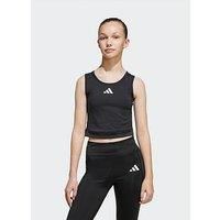 adidas Junior Girls Training Fav Crop Top Size & Fit True to size - order your usual size Cropped fit Available in sizes 5-6 years - 14-15 years (5-6:24"", 6-7:24.5"", 7-8:25"", 8-9:26.5"", 9-10:28"", 10-11:29.5"", 11-12:30.5"", 12-13:32.5"", 13-14:34"", 14-15:35"") Details Junior Girls Training Fav Crop Top by adidas Black Crew neck Sleeveless Small logo on front Climacool Material & Care Material Content: 75% Polyester, 25% Elastane Washing Instructions: Machine Washable