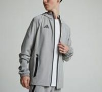adidas Junior Tiro Woven Hoodie in Team Mid Grey. Look and perform like a pro thanks to this regular fitting woven hoodie from adidas that is inspired by the beautiful game. With a full zip fastening front, AEROREADY moisture-management to help keep you dry and comfortable as you run rings round the other team, fixed hood, secure zip pockets with contrast trim for the safe keeping of your small essentials (or just your hands), signature contrast 3-Stripes to sleeves and left chest logo to complete. Grey...