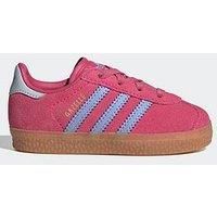 adidas Originals Nursery Gazelle Trainers in Shock Pink, Blue Spark and Halo Blue. This stallion of a shoe has had an innings of over 70 years and is showing no signs of being bowled out by the competition. Cut into a low profile that showcases a buttery soft suede upper, soft textile lining and durable rubber sole. Regular fitting with elasticated laces, classic serrated 3-Stripes to sides, foil Gazelle wording and Trefoil logos to heel tab, tongue and insole. Pink Size - 3 - Manufacturers part number: WJ9SZ