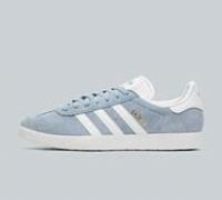 adidas Originals Gazelle Trainers in Tactile Blue, White and Gold Metallic. This stallion of a shoe has had an innings of over 70 years and is showing no signs of being bowled out by the competition. Cut into a low profile that showcases a buttery soft suede upper, soft textile lining and durable rubber sole. Regular fitting with a secure lace fastening, classic serrated 3-Stripes to sides, foil Gazelle wording and Trefoil logos to heel tab, tongue and insole. Blue Size - 9.5