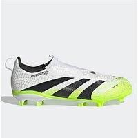 adidas Junior Predator League Laceless Firm Ground Football Boots Size & Fit True to size - order your usual size Standard fit Available in sizes 10 younger - 5 older Details End Use: Football Junior Predator League Laceless Firm Ground Football Boot by adidas White Pull on fastening Soles suitable for firm ground Low profile cut With logo detailing Material & Care Material Content: SYNTHETICS,TEXTILE TEXTILE TEXTILE SYNTHETICS