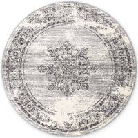 The Gloria Round Rug in the Lydia design brings timeless oriental charm to modern interiors with its vintage-inspired pattern in grey, dark grey, and green tones. Crafted from 100% polypropylene with a 9 mm soft short pile and 100% jute backing, this rug is both stylish and practical, offering durability for everyday living. Its OEKO-TEX Standard 100 certification ensures safety and quality, while the thin yet cosy profile makes it compatible with underfloor heating. Dirt-repellent, easy to maintain, and hardwearing, the Lydia rug is an elegant choice for living rooms, bedrooms, home offices, or reading corners, adding a refined focal point to any space. | THE RUGS Gloria Round Rug – Lydia Vintage Oriental Short Pile Polypropylene 9mm in Grey | Size: 160cm diameter - Manufacturers part number: THE RUGS_4068226015112