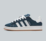 adidas Originals Junior Campus 00s Trainers in Night Indigo, Crystal White and Footwear White. Outstanding throwback styling that has the iconic 1980s Campus trainer coursing through its DNA whilst also channelling the spirit of Y2K aesthetics. With a distinct sleek silhouette these regular fitting flat lace closure sneakers boast a lush leather upper, soft textile lining and grippy rubber outsole for optimal traction. Serrated 3-Stripes and Trefoil branding combine with contrast Campus wordmark. Navy S...
