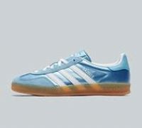 adidas Originals Womens Gazelle Indoor Trainers in Blue and Footwear White. Stylish and retro-inspired sneaker rooted in the design legacy of the 1960s. This version features a premium suede upper for a luxurious feel, contrasted by the classic adidas 3-Stripes in white. The shoe is completed with a gum rubber outsole, providing both durability and a vintage aesthetic. Blue Size - 3