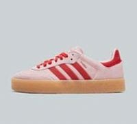 adidas Originals Womens Sambae Trainers in Clear Pink, Better Scarlet and Gum. Introducing a contemporary twist to a legendary design, the Sambae takes what was once an indoor football shoe and transforms it into a smooth leather tour-de-force fit for the modern-day street. Regular fitting with a secure lace closure, soft textile lining, translucent gum rubber outsole and an eye-catching stitch-and-turn toe cap. Classic adidas hallmarks throughout. Pink Size - 6