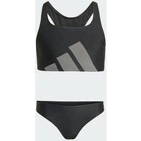 adidas Big Logo C-back Bikini Set Kids Slice through the water in this juniors' adidas bikini set. The racerback design gives you freedom of movement in all of your strokes. Soft tricot fabric dries quickly. On the low-rise bottoms, a 3 Bar Logo shows your adidas pride poolside. Regular fit Material Content: Poly amide 78 %, Elastane 22 % 100% polyester (recycled) 3 Bar Logo