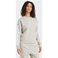 adidas Sportswear Women's Essentials 3-stripes Fleece Sweatshirt - Grey Add this adidas sweatshirt to your everyday rotation for an instant style upgrade. The soft fleece build provides all-day comfort whether you're heading out or lounging at home. Ribbed cuffs keep the sleeves in place as you move. Featuring the 3 Bar Logo and 3-Stripes down the sleeves, this essential layer lets you rep your adidas pride. By choosing , we are able to reuse materials that have already been created, which helps to re...