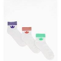 adidas Originals Unisex 3 Stripe Ankle Socks 3 Pack - White/multi