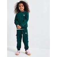 adidas Originals Kids Unisex Cargo Hoodied Tracksuit - Green This hoodie and pants set has a soft fleece build and ribbed cuffs and hems to keep kids warm. A kangaroo pocket on the sweatshirt and cargo pockets on the pants provide plenty of room for them to bring their essentials with them. Perfect for when they're cosying up at home or out with friends, this easygoing essential makes comfort the top priority. Material Content: 70% COTTON-/30% PET-REC-Fleece Washing Instructions: Machine Washable