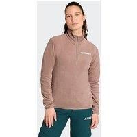 adidas Terrex Womens Outdoor Multi Essentials 1/4 Zip Fleece Jacket Size & Fit True to size - order your usual size Regular fit Regular length Available in sizes XS - XL Details Womens Outdoor Multi Essentials 1/2 Zip Fleece Jacket by adidas Terrex Brown Funnel neck Long sleeves with elasticated cuffs Quarter zip fastening Material & Care Material Content: 100% PET-REC-Polarfleece Washing Instructions: Machine Washable - Manufacturers part number: JM3119