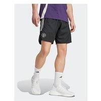 adidas Mens Manchester United Training Shorts Size & Fit True to size - order your usual size Short length Available in sizes S - 2XL Details Mens Manchester United Training Short by adidas Black Football shorts Elasticated waist Badge branding 2 side slip pockets Material & Care Material Content: 100% PET-REC Washing Instructions: Machine Washable - Manufacturers part number: WKKD0