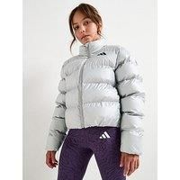adidas Sportswear Junior Unisex Synthetic Down Glam Jacket - Silver When the temperature drops, this juniors' jacket from adidas is the perfect companion for all kinds of winter fun. The metallic finish adds a stylish touch, while insulation keeps the chill at bay. A high collar provides extra protection from the elements. CLIMAWARM traps heat and releases sweat for a warm, dry and focused performance. CLIMAWARM has insulating materials that trap warmth for optimal body temperature. Stay dry inside wit... - Manufacturers part number: JM1670