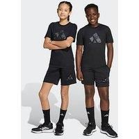 adidas Unisex Junior Training Essentials Print T-Shirt & Short Set Size & Fit Available in sizes 5-6 - 15-16 Years Details Unisex Junior Training Essentials Print T-Shirt & Short Set by adidas Black Crew neck Short sleeves Logo front Elasticated waist shorts Side pockets Material & Care Material Content: 70% Polyester/30% RAYON-Single jersey Washing Instructions: Machine Washable - Manufacturers part number: KLH91