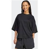 adidas Sportswear Women's All Szn Soft Lux Loose Tee - Black When you're in the market for a tee that's a cut above, this adidas t-shirt hits the mark. Made from soft interlock fabric, it has a loose shape that lets you move without restriction. The short sleeves are cut a little longer and are super spacious for a modern look. Material Content: 100% COTTON--Interlock Washing Instructions: Machine Washable