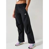 adidas Womens Training Essentials Woven Pants Size & Fit True to size - order your usual size Regular fit Available in sizes XS - 2XL Details End Use: Training Womens Training Essentials Woven Pants by adidas Black Straight cut track pants Mid rise Water resistant Elasticated waist Pull on fastening Side slip pocket Material & Care Material Content: 87% Polyester /13% ELASTANE-Plain weave