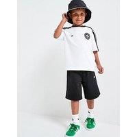 adidas Originals Kids Boys T-shirt And Short Set - White Football nostalgia with a twist. This kids' set from adidas brings sporty flair to their everyday adventures. The set includes a loose-fit V-neck tee with a monogram print and matching shorts. Small Trefoil logos and iconic 3-Stripes add an authentic, athletic touch. Material Content: 100% PET-REC-Jacquard Washing Instructions: Machine Washable