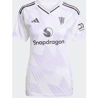 adidas Manchester United Womens 25/26 Away Stadium Replica Shirt Size & Fit True to size - order your usual size Available in sizes XS - XL Details Manchester United Womens 25/26 Away Stadium Replica Shirt by adidas White Football shirt Short sleeves V neck Badged branding Moisture wicking Material & Care Material Content: 100% PET-REC Washing Instructions: Machine Washable