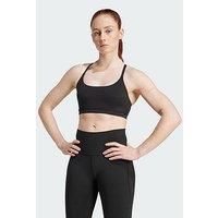 adidas adidas All Me Light Support Bra This adidas workout bra supports you through yoga, Pilates or barre with light support and a barely-there feel. AdiSOFT fabric and smooth seems keep you comfortable so you can find your focus. Removable pads have grip dots that keep them securely in place as you flow through sun salutations or gentle barre work. Tight fit Material Content: Recycled polyester 79 %, Elastane 21 % Scoop neck 79% polyester (recycled), 21% elastane - Manufacturers part number: JWJ76