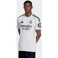 adidas Real Madrid Mens 25/26 Home Stadium Replica Shirt Size & Fit True to size - order your usual size Available in sizes S - 3XL Details Real Madrid Mens 25/26 Home Stadium Replica Shirt by adidas White Football shirt Short sleeves Crew neck Jersey fabric Badged branding Quick drying Material & Care Material Content: 100% PET-REC Washing Instructions: Machine Washable - Manufacturers part number: JJ1931