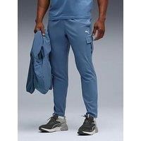 Puma Mens Training Tech Woven Cargo Pants Size & Fit True to size - order your usual size Available in sizes S - 2XL Details End Use: Training Mens Training Tech Woven Cargo Pants by Puma Blue Slim cut track pants Mid rise Elasticated waist Drawstring fastening Side cargo pockets Material & Care Material Content: 100% polyester Washing Instructions: Machine Washable - Manufacturers part number: WMBKF