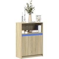 Decorate your room with this modern sideboard with LED lights, it easily blends with furniture in any style at your house. Durable material: The engineered wood is of exceptional quality with smooth surface and also features strength, stability and resistance to moisture.RGB LED lights: The buffet is equipped with vibrant RGB LED lights. With various customisable menus, you can effortlessly change the colour of the lights and even set them to adjust automatically. These LED lights not only enhance the c...