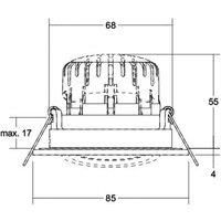 LED recessed spotlight BB23 with switchable LED driver and IP65, swivelling For bathrooms, wellness areas and many other damp rooms in the private or commercial sector, this LED downlight BB23, which can be swivelled by 15 all around, is dust-proof and protected against water jets with protection class IP65. It can be mounted without tools using installation springs, can be installed in ceilings up to 1.7 cm thick and is not dimmable. The downlight emits warm white light at an angle of 36 and is optimal...