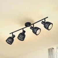 Eskil ceiling light with four lampshades made of black bamboo Experience how the Eskil ceiling light transforms any room into an oasis of cosiness with its 4-bulb design and elegant combination of black and bamboo. The stylistic diversity, which includes both modern and rustic country house elements, makes this light a versatile companion for different living concepts. Whether in the dining room for an atmospheric dinner or in the living room for relaxed evenings - the Lindby ceiling light creates the p...