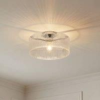 Meritt ceiling light made of ribbed glass and metal for stylish lighting accents The Meritt ceiling light combines modern design with materials such as ribbed glass and metal. The combination of transparent and chrome-coloured elements gives the light an elegant and timeless aesthetic that blends harmoniously into various living areas such as the living room or dining room. Thanks to the option of individually adjusting the brightness via an external dimmer, the light offers flexibility for different li...