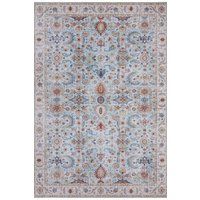 The Oriental Vivana Rug brings classic Persian-inspired elegance with a modern distressed twist, featuring a vintage medallion design and vibrant tones of pink, blue, and red that instantly brighten any room. Made from 100 percent polyester with a soft cotton backing, this low 0.5 cm flat-woven pile rug is durable, comfortable underfoot, and robot vacuum friendly, making it perfect for busy homes. Designed for indoor use, it suits all flooring types including underfloor heating, and its easy-care surface can be cleaned with carpet foam or shampoo for fuss-free maintenance. Simply unroll and allow time for the fibres to settle, vacuum regularly, and place furniture to help it flatten quickly. Ideal for living rooms, bedrooms, dining areas or hallways, this versatile rug combines timeless oriental style with everyday practicality, enhancing your space with warmth, colour, and long-lasting comfort. | THE RUGS Oriental Vivana Rug - Vintage Medallion Polyester Low Pile Carpet in Blue | Size... - Manufacturers part number: THE RUGS_4260648234748