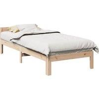 Get a better restful night's sleep from this bed frame! It makes a welcoming addition to any bedroom. Stable and long-lasting frame: Solid pinewood is known for its strength and durability. Its straight grains and distinctive knots contribute to its rustic charm. No box spring required: The bed frame includes a slatted base that provides excellent support and breathability for your mattress, eliminating the need for a box spring. Stable and durable feet: This bed is supported by sturdy feet, ensuring s...