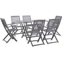 This practical yet stylish wooden garden dining set is perfectly suitable for outdoor use and ensures an attractive focal point for your garden, terrace or patio. Both table and chairs are made of solid acacia wood with a grey wash. Therefore, they are weather resistant, durable and easy to clean with a damp cloth. Due to the sturdy wooden structure, this set is very stable and safe. Meanwhile, it will provide you with comfort and great convenience to spend time with your family and friends. In addition...