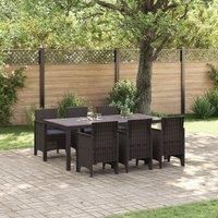 This garden dining set adds a modern vibe to your outdoor meals. It comfortably seats up to six people at its spacious 180 cm by 90 cm table. Made from top-quality polypropylene for solid UV protection, itll last for ages. The smooth finish looks great and is easy to clean. Get your mates over for memorable meals in a stylish outdoor setting. | Berkfield Home 7 Piece Garden Dining Set with Cushions Brown Poly Rattan