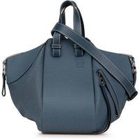 Rating: B+. Condition description: Exterior Handle Cracked Worn. Interior Lining stained . Practical Attachment Scratched. Exterior Side stained . Exterior Top Cracked. Zipper Scratched. The Small Leather Hammock Bag effortlessly combines style and functionality. Crafted from high-quality leather it features side zip details flat leather handles and a detachable flat shoulder strap. The open top design offers easy access while the exterior zip pocket and interior slip pockets provide convenient storage options. This versatile piece is perfect for the modern woman on the go. | LOEWE Women's Preloved Small Leather Hammock Bag - Blue Satchel - Manufacturers part number: Loewe_4741655282347