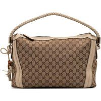 Rating: B+. Condition description: Exterior Back stained . Exterior Bottom Discolored Worn. Exterior Corners Worn. Exterior Front Discolored Worn. Exterior Front stained . Exterior Handle Worn. Interior Lining stained . Practical Attachment Scratched. Exterior Side stained with Transfer Of Color. Zipper Scratched. This stylish tote bag features a tassel accent perfect for carrying your essentials in style. | Gucci Women's Preloved Medium GG Canvas Bella Shoulder Bag in Brown - Manufacturers part number: Gucci_4741655533302