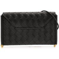 Rating: AB. Condition description: Exterior Front Creased. Interior Lining Scratched. This shoulder bag features a woven design and shoulder strap. Its compact size makes it ideal for carrying essentials. | Bottega Veneta Women's Preloved Calfskin Intrecciato Solstice Phone Pouch - Black Crossbody - Manufacturers part number: Bottega Veneta_4741655616432