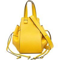 Rating: AB. Condition description: Exterior Back stained . Exterior Bottom Worn. Exterior Bottom stained . Exterior Corners stained . Exterior Front stained . Exterior Handle stained . Exterior Side stained . This leather top handle bag is a stylish and functional accessory. It is perfect for everyday use. | LOEWE Women's Preloved Small Grained Calfskin Drawstring Hammock Satchel - Yellow Bag - Manufacturers part number: Loewe_4741655633248