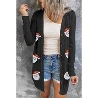 Elevate your holiday wardrobe with the Black Sequined Santa Claus Button Up Cardigan. This festive garment features glittering sequins and an exquisite Santa Claus pattern perfect for conveying the joyous Christmas spirit. The button-up front design ensures easy wear making it an ideal addition to your holiday outfits. Pair it effortlessly with a long-sleeve top and jeans for all your Christmas activities. | Everyday The Label Women's Black Sequined Santa Claus Button Up Cardigan | Size: Small
