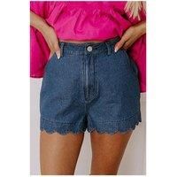 Everyday The Label Women's Sail Blue Scalloped Hemline Acid Wash High Waist Denim Shorts in Mid Blue | Size: 16