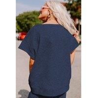 Upgrade your casual wardrobe with this Navy Blue Textured Loose Fit T Shirt and Drawstring Pants Set. The loose fit provides ultimate comfort while the textured fabric adds a stylish touch. The drawstring waist allows for a customizable fit. This set is perfect for a casual and relaxed look. Available in various sizes. | Everyday The Label Women's Navy Blue Textured Loose Fit T-Shirt & Drawstring Pants Set | Size: Medium