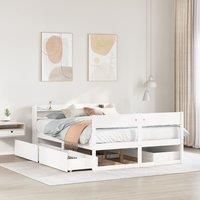 Get a better restful night's sleep from this bed frame! It makes a welcoming addition to any bedroom. Stable and long-lasting frame: Solid pinewood is known for its strength and durability. Its straight grains and distinctive knots contribute to its rustic charm.Slatted base for optimal support: The bed frame is equipped with a slatted base for support and breathability for your mattress.Make full use of space: This bed frame features four drawers underneath, providing storage for items like extra bedd...