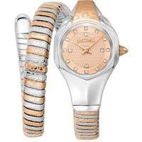Stainless steel case, Stainless steel bracelet, Rose gold dial, Quartz movement, Scratch resistant mineral, Water resistant up to 3 ATM - 30 meters - 100 feet Silver-tone stainless steel case with a two-tone (silver-tone and rose gold-tone) stainless steel bracelet. Fixed silver-tone stainless steel bezel. Rose gold-tone dial with rose gold-tone hands and index hour markers. Dial Type: Analog. Quartz movement. Scratch resistant mineral crystal. Round case shape, case size: 22 mm. Band width: 8 mm, band ...