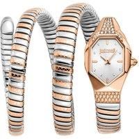 Womens's Snake Watch, Rose Gold Color Case, Silver Dial, Two Tone Silver & Rose gold Stainless Steel Bracelet | Just Cavalli Women's Ambra Two Tones Rose Gold Silver Snake Watch