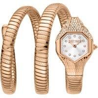 The Just Cavalli JC1L190M0075 watch from the JC1L190 series is a stylish analog timepiece designed specifically for women. Featuring a rose gold color and crafted from durable stainless steel, it combines elegance with everyday practicality. Powered by a reliable quartz movement, this watch is ideal for casual occasions, offering both fashion and function in a refined design. | Just Cavalli Women's Snake 316L Stainless Steel White Dial Watch in Gold - Manufacturers part number: Just Cavalli_4894626323959