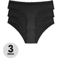 DORINA Briefs (3 Pack) Size & Fit True to size - order your usual size Classic cut Available in sizes 8-18 Details Briefs by DORINA Black Great value pack of three This handy pack of 3 briefs is created in comfortable cotton Feature delicate lace trims along the legs and waistband Material Material Content: 95% Cotton, 5% Spandex Washing Instructions: Machine Washable Briefs & Shorts Style: Brief - Manufacturers part numbers: RQ77F|DOR000017
