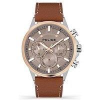 Police Kismet SS Multi Dial Brown Leather Strap Watch This Police KISMET Watch is a must have this season. It features a Multifunction Warm Grey Dial which is set in a 47mm Stainless Steel Silver, Rose Gold Top Ring Case. The Brown Leather Strap with Pin & Buckle Clasp is perfect for everyday use. This watch comes with a branded watch box and a 2 year warranty. 24Hr Display: N Depth: 11.3 MM Height: 245 MM Age Range: 6+ Case height (in cm): 1.1 Case Shape: Round Fastening Type: Strap Buckle Glass: Miner...