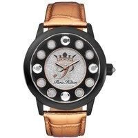 Paris Hilton: Fame Black Watch Chic and fabulous, this Paris Hilton "Fame" watch offers the latest styles that allow you to express yourself and celebrate your journey through life with fashion. The silver sparkling powder dial features a "Paris Hilton" signature. A metallic rose-gold crocodile pattern leather strap and a stone in the crown add sparkle and glam to this extravagant timepiece. With a quartz movement, protective mineral crystal window, 99 ft. water resistance and a IP black buckle clas...